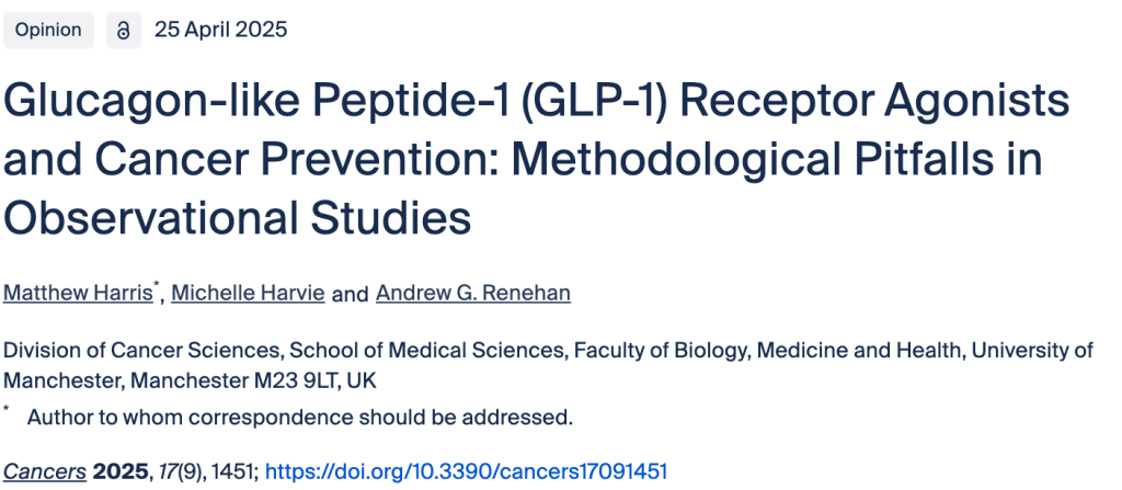 Objectives/methods: The aim of this opinion paper is to critically appraise the methodological challenges and pitfalls associated with studying the question ‘does weight loss through use of GLP-1 receptor agonists reduce cancer risk’ through observational studies, and exemplify this through critique of a recent study published in this journal.